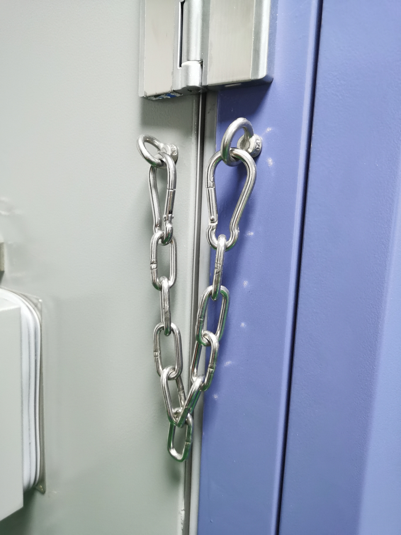 | 设备门左右分别有2根防爆链条,关键时候防止门被炸开。 |