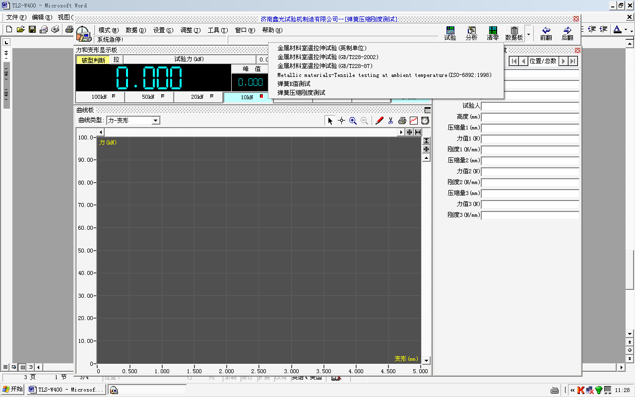 10.显示方式:数据和曲线随试验过程动态显示;
